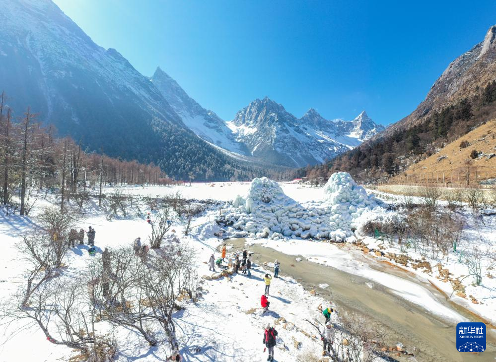 1月25日,游客在畢棚溝風景區(qū)觀光(無人機照片)。新華社記者 王曦 攝