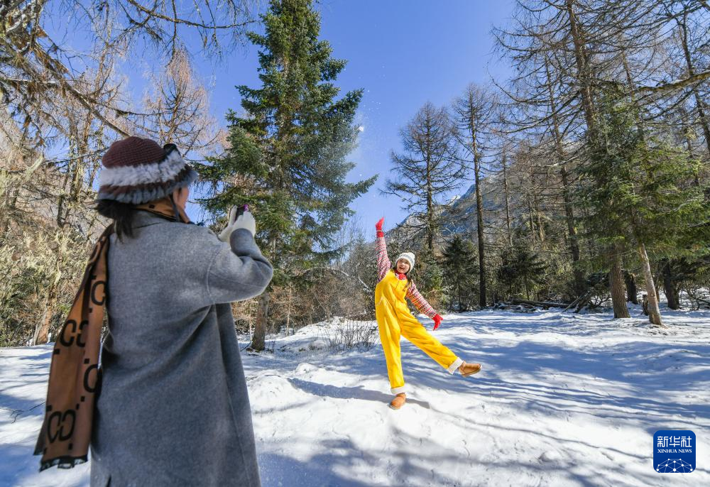 1月25日,游客在畢棚溝風景區(qū)拍照。新華社記者 王曦 攝
