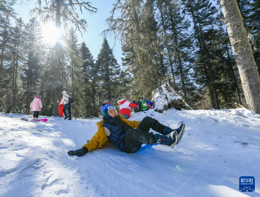 1月25日,小游客在畢棚溝風景區(qū)玩耍。新華社記者 王曦 攝