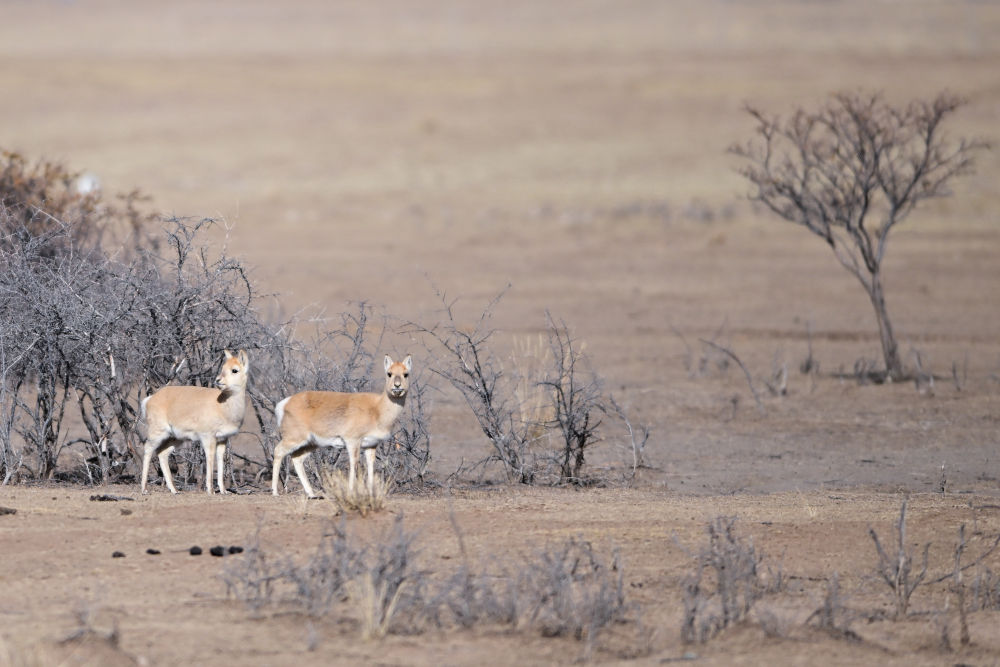 這是1月24日在青海省海北藏族自治州剛察縣哈爾蓋鎮(zhèn)境內(nèi)的草原上拍攝的普氏原羚。新華社記者 張龍 攝