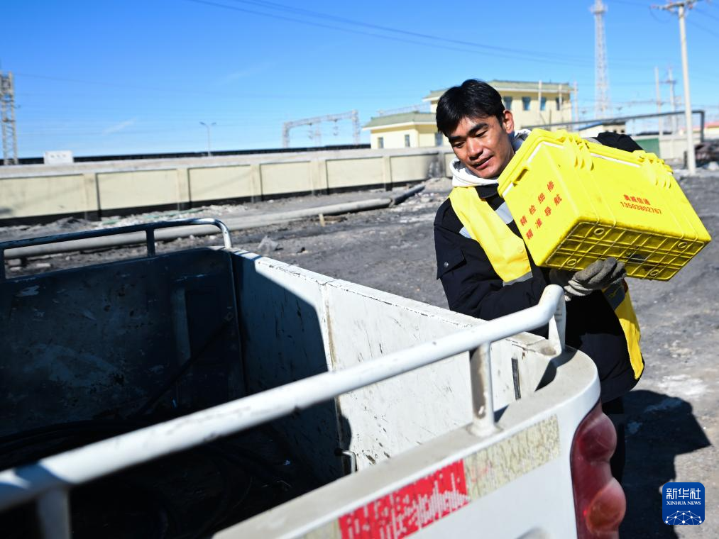 1月29日,格爾木電務(wù)段格爾木東信號(hào)車間察爾汗信號(hào)工區(qū)職工普布旦增將工具箱裝車準(zhǔn)備前往區(qū)間進(jìn)行作業(yè)。新華社記者 張龍 攝