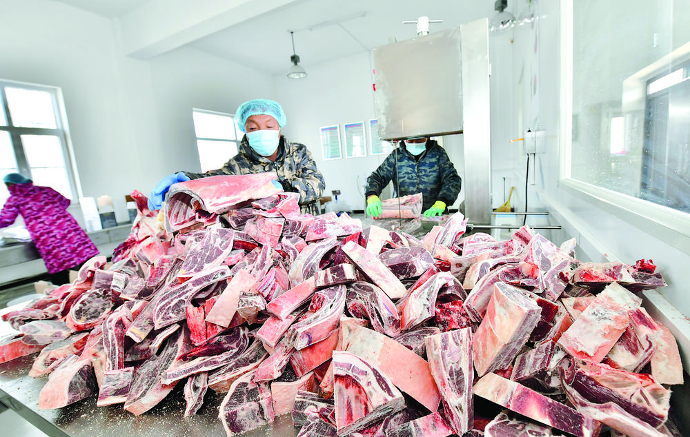 1月24日,記者走進(jìn)青海省海西蒙古族藏族自治州格爾木市唐古拉山鎮(zhèn)長江源村的唐古拉牦牛、藏羊精深加工基地,車間內(nèi)屠宰、冷凍、包裝等功能區(qū)劃分明確,一應(yīng)俱全。忙碌的生產(chǎn)線上,身穿食品加工工作服的工作人員正沿著流水線緊張有序地工作。剔骨、粗分完成后,工作人員再按不同部位精準(zhǔn)分割、整齊打包,等待銷售發(fā)貨,全力保障年貨產(chǎn)品的市場供應(yīng)。長江源村駐村第一書記梁亮告訴記者:“臨近春節(jié),牛羊肉禮盒備受青睞,浙江、江蘇、西藏等地的訂單也比平時(shí)增加了很多。牛羊肉產(chǎn)業(yè)鏈的延伸,成為了我們長江源村鄉(xiāng)村振興的又一把‘金鑰匙’。”