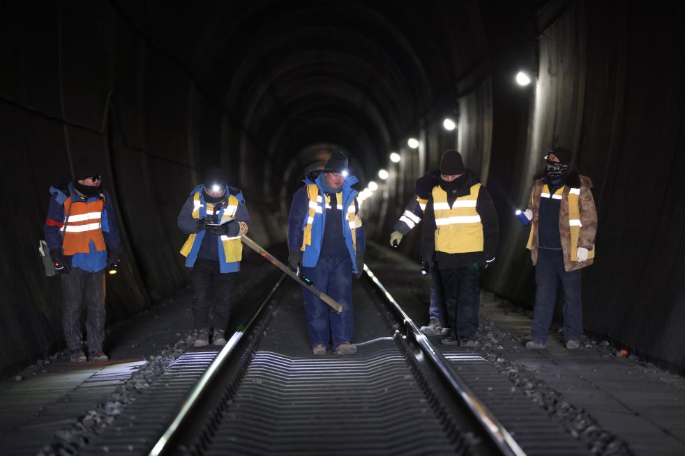 “路基變化、氣候波動(dòng)……這些因素都是研究凍土影響的關(guān)鍵數(shù)據(jù),一絲一毫的變化都會(huì)導(dǎo)致線路出現(xiàn)不同的問題?!惫と藗儊淼阶鳂I(yè)地點(diǎn)開始上道作業(yè),張福強(qiáng)掏出一本快被翻爛的筆記本,一邊記下這次養(yǎng)護(hù)的氣候及線路數(shù)據(jù),一邊和工友們向隧道深處走去。