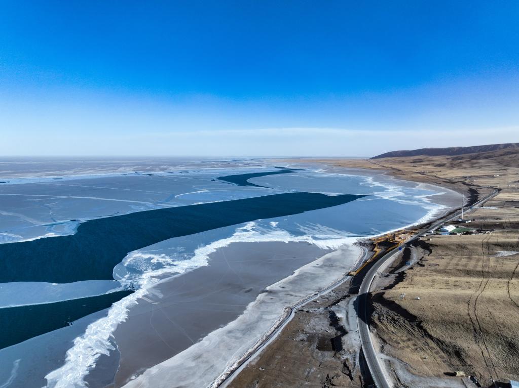 1月25日,青海省海南藏族自治州共和縣境內(nèi)的青海湖一角(無人機(jī)照片)。新華社記者 耿輝凰 攝