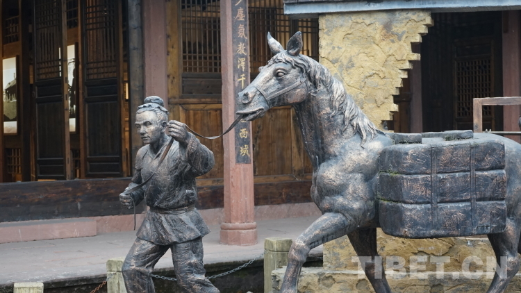 圖為茶馬司內(nèi)運(yùn)茶隊(duì)伍雕塑 攝影:張宇