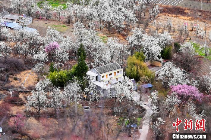 梨花叢中的村寨。記者 安源 攝