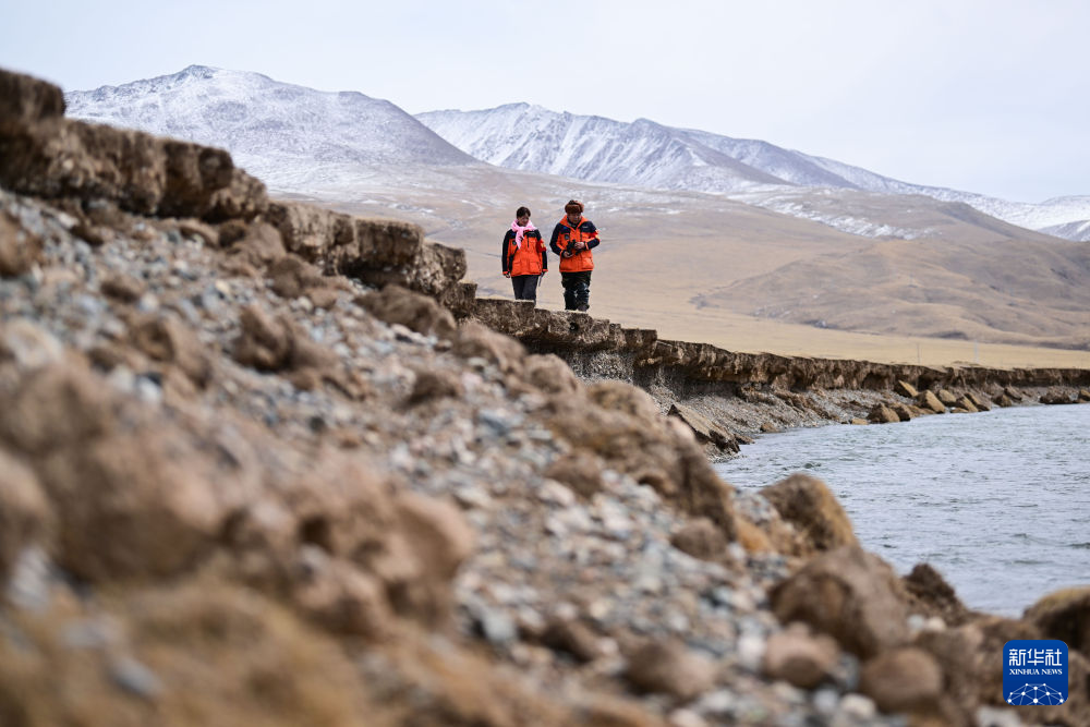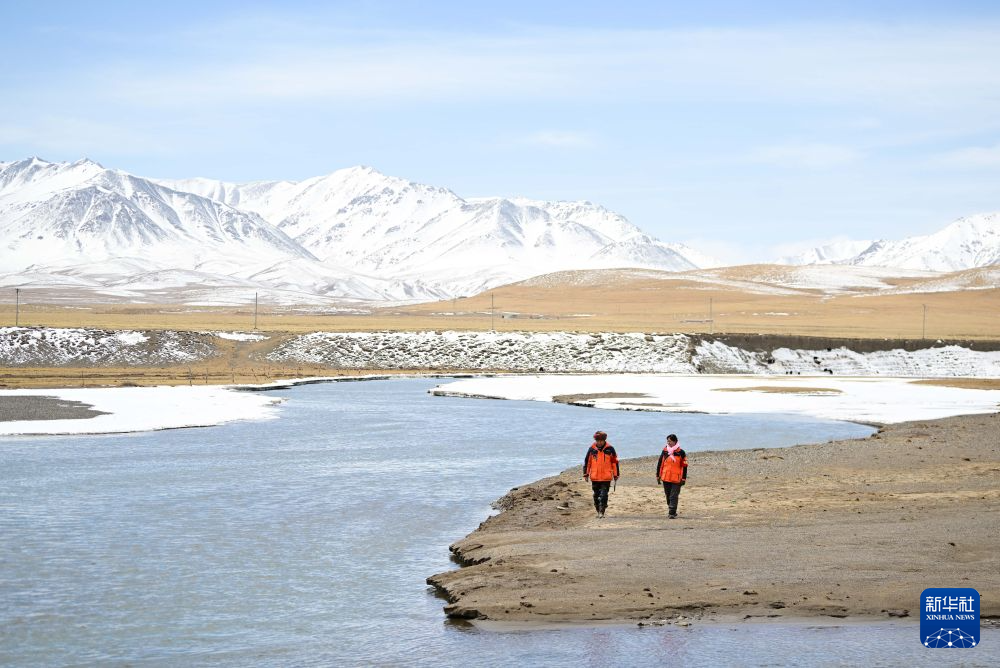 3月21日,葉金俄日(左)與東木措在青海省海北藏族自治州祁連縣的黑河流域巡護(hù)。新華社記者 張龍 攝
