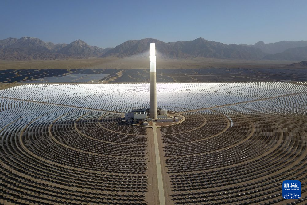 這是2022年6月8日在海西州德令哈市光伏(光熱)產業(yè)園拍攝的光熱電站(無人機照片)。新華社記者 范培珅 攝