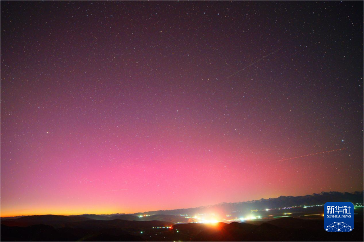 這是2024年5月11日在青海省海北藏族自治州門(mén)源回族自治縣拍攝到的極光。新華社發(fā) 魏鵬 攝