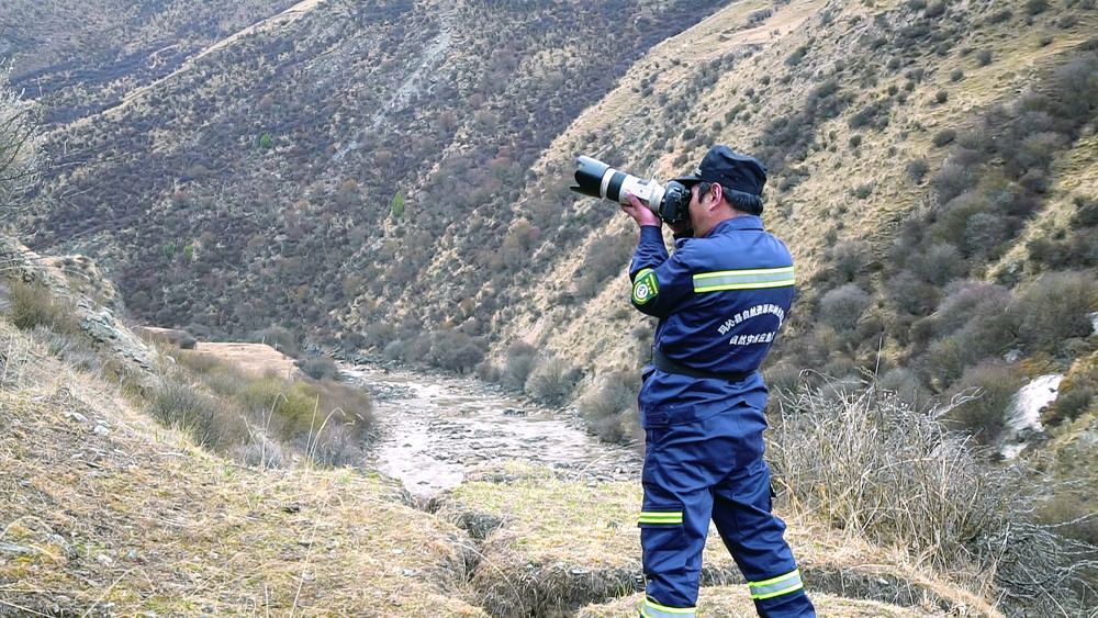 先巴才旦用相機記錄巡護途中所見。張得俊 攝