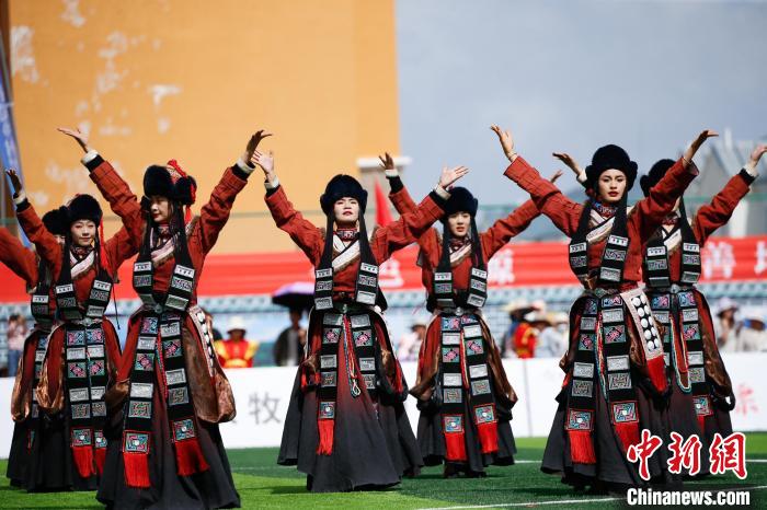 圖為演員展示國(guó)家級(jí)非遺華熱藏族服飾。馬銘言 攝