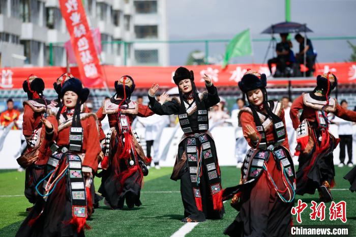 圖為演員通過(guò)舞蹈展示國(guó)家級(jí)非遺華熱藏族服飾。馬銘言 攝