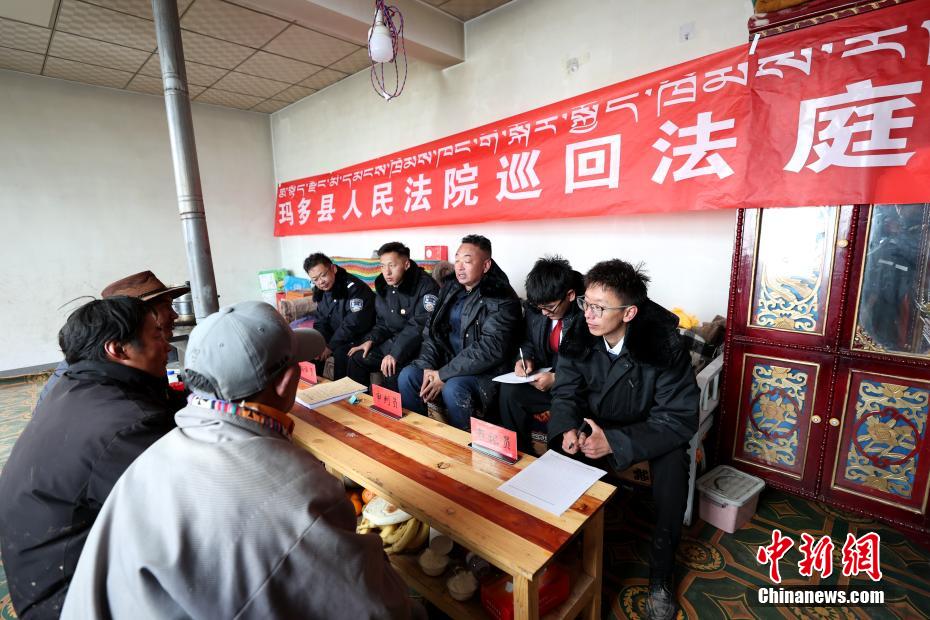 瑪多縣地處黃河源頭,是黃河發(fā)源后流經(jīng)的第一個縣城?,敹嗥骄0纬?500米,是青海省海拔最高的縣,也是人類生存環(huán)境最惡劣的地區(qū)之一,加上地廣人稀,交通不便,法官調(diào)查取證難、送達難,農(nóng)牧民參與訴訟難。1957年,瑪多縣人民法院成立之初就成立了“馬背法庭”。巡回法庭的的法官經(jīng)常帶著干糧,騎著馬找到當事人,就地審理案件。