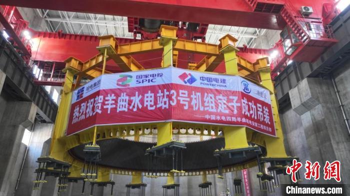 圖為黃河羊曲水電站3號(hào)機(jī)組定子完成吊裝。國家電投黃河水電公司供圖