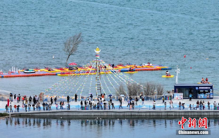 7月8日,游客在青海省海南藏族自治州共和縣青海湖二郎劍景區(qū)內(nèi)觀賞“魚鳥共生”的生態(tài)景象。中新社記者 馬銘言 攝