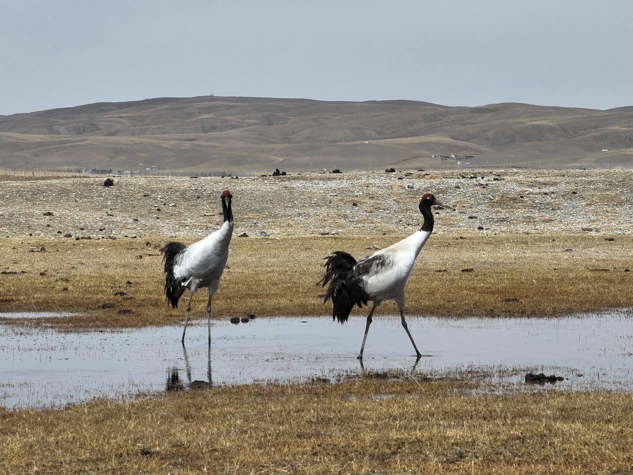 前不久,多杰措毛和同事一道給濕地中的黑頸鶴筑了巢?!昂陬i鶴很謹(jǐn)慎,我們筑巢時,它就在遠(yuǎn)處注視著我們?!比缃?,他們所筑的其中一個巢中,已有兩只黑頸鶴寶寶誕生,這讓多杰措毛心中又多了件記掛的事。