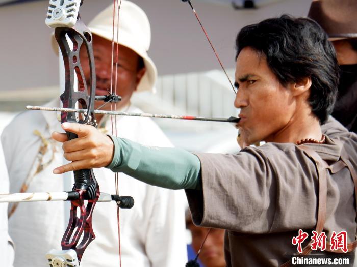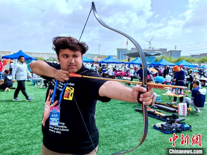 7月20日至23日,第九屆中國·青海國際民族傳統(tǒng)射箭精英賽在青海省海北藏族自治州剛察縣舉行,來自柬埔寨、蒙古國、波蘭、俄羅斯、中國等22個國家和地區(qū)的1100名射箭高手齊聚一堂,展示精湛射箭技藝。本屆賽事設(shè)置現(xiàn)代傳統(tǒng)弓、復(fù)合弓、反曲弓及牛角弓4個弓種,設(shè)置“現(xiàn)代傳統(tǒng)弓混合團(tuán)體和個人”等5個競賽項目。該賽事已成為中國民族傳統(tǒng)射箭比賽中規(guī)格級別最高、民族選手最多、參賽國家和地區(qū)最廣、弓種和項目最全的國際性品牌賽事。圖為7月21日國外運(yùn)動員在青海剛察舉辦的射箭賽場外試弓。中新社記者 李雋 攝