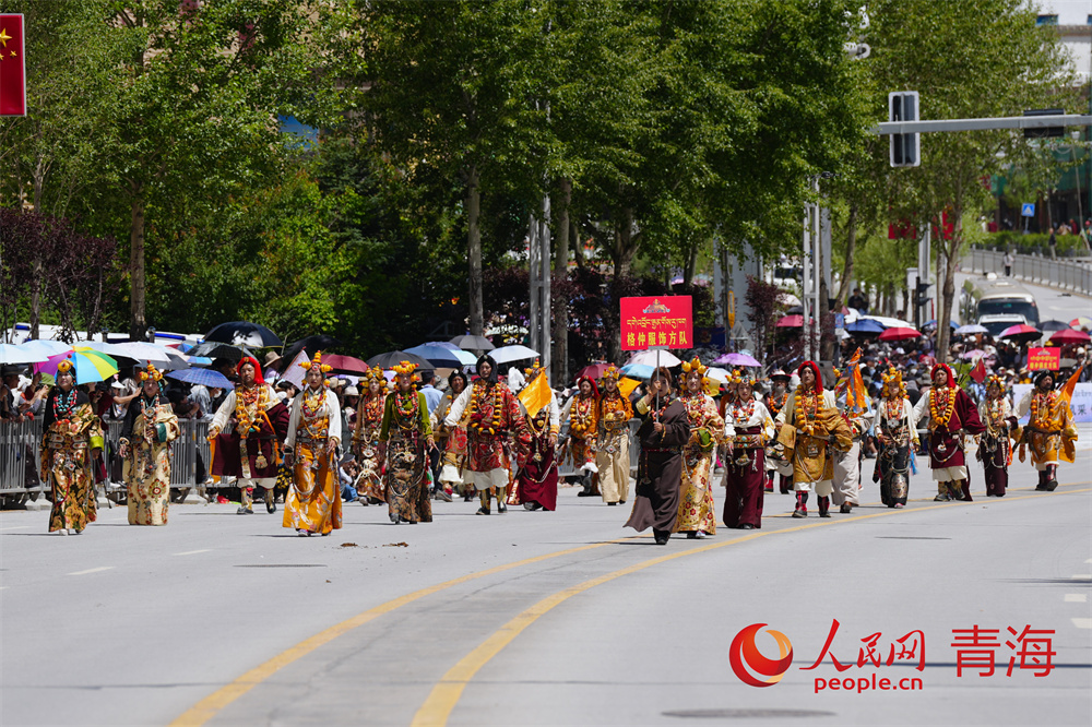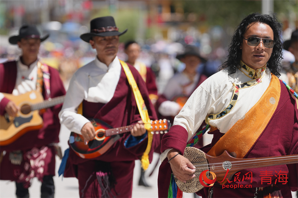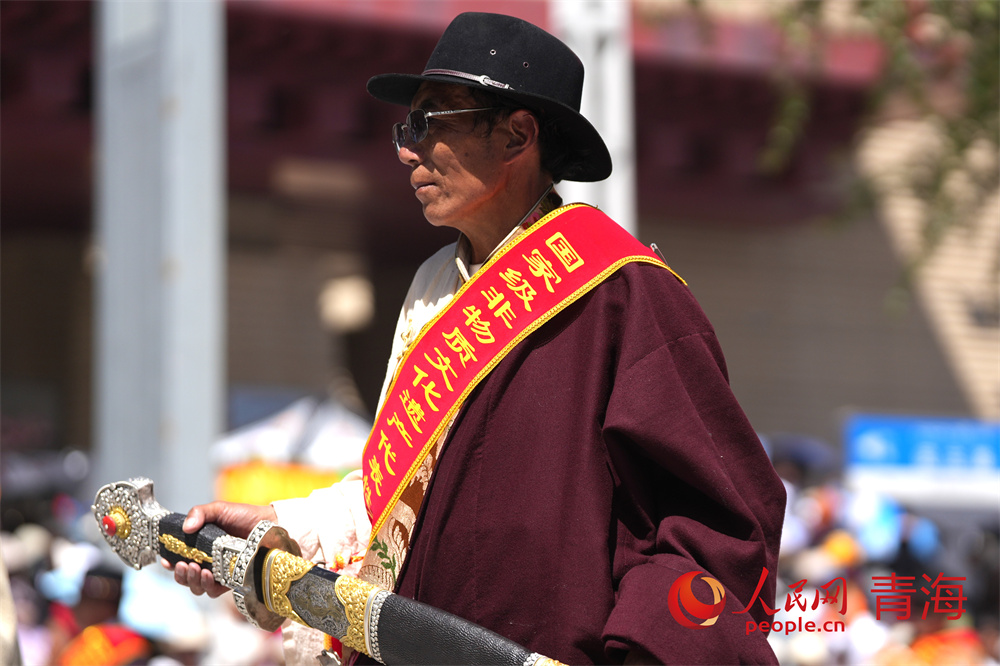 巡演現(xiàn)場,玉樹馬術(shù)方隊、康巴漢子方隊、伊舞方隊、藏族彈唱方隊、格仲服飾方隊、游牧方隊、玉樹州非物質(zhì)文化遺產(chǎn)傳承人方隊等輪番登場,形式多樣的非遺展演為廣大游客和當?shù)厝罕妿砹艘粓鲆曈X盛宴。
