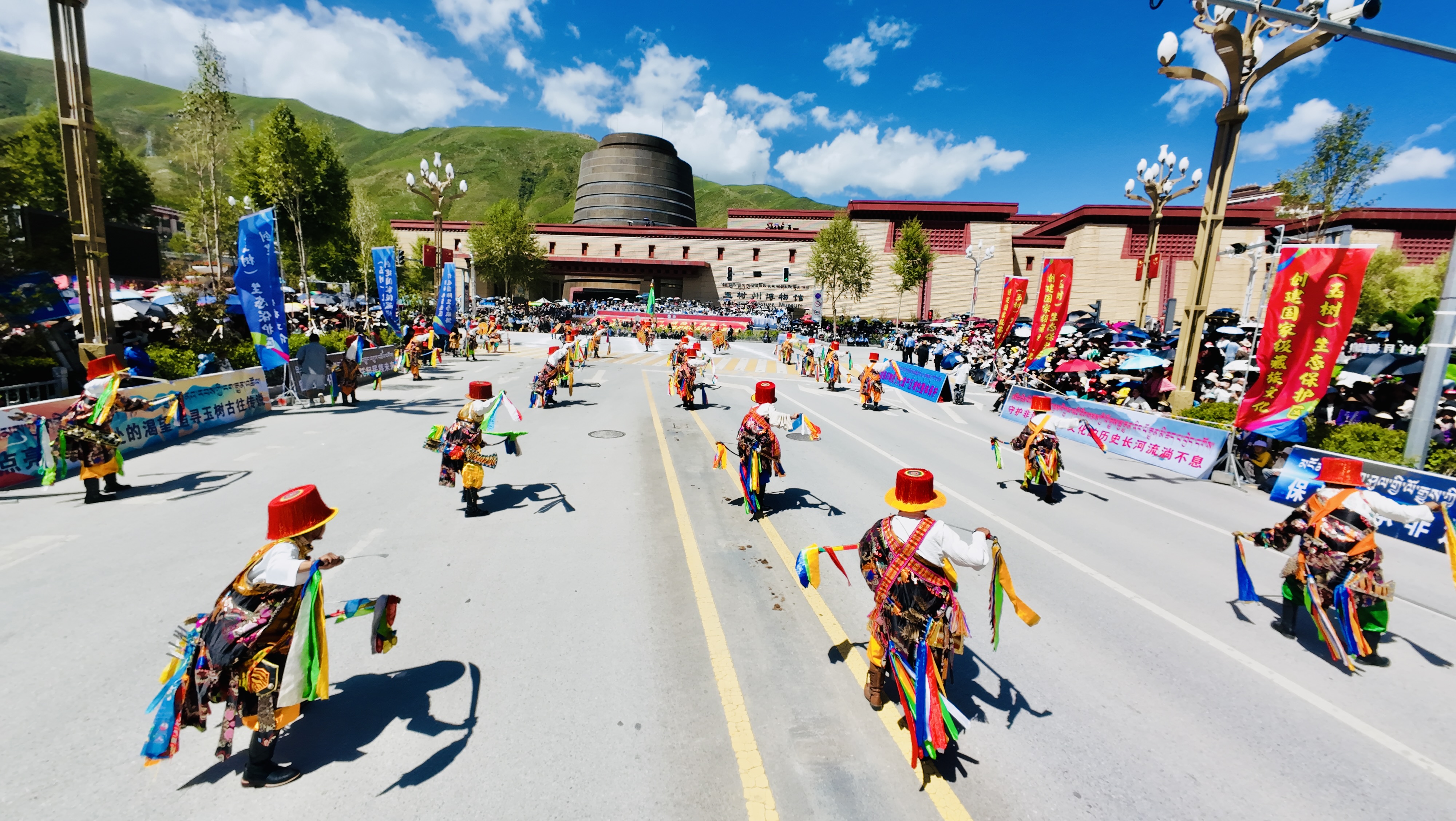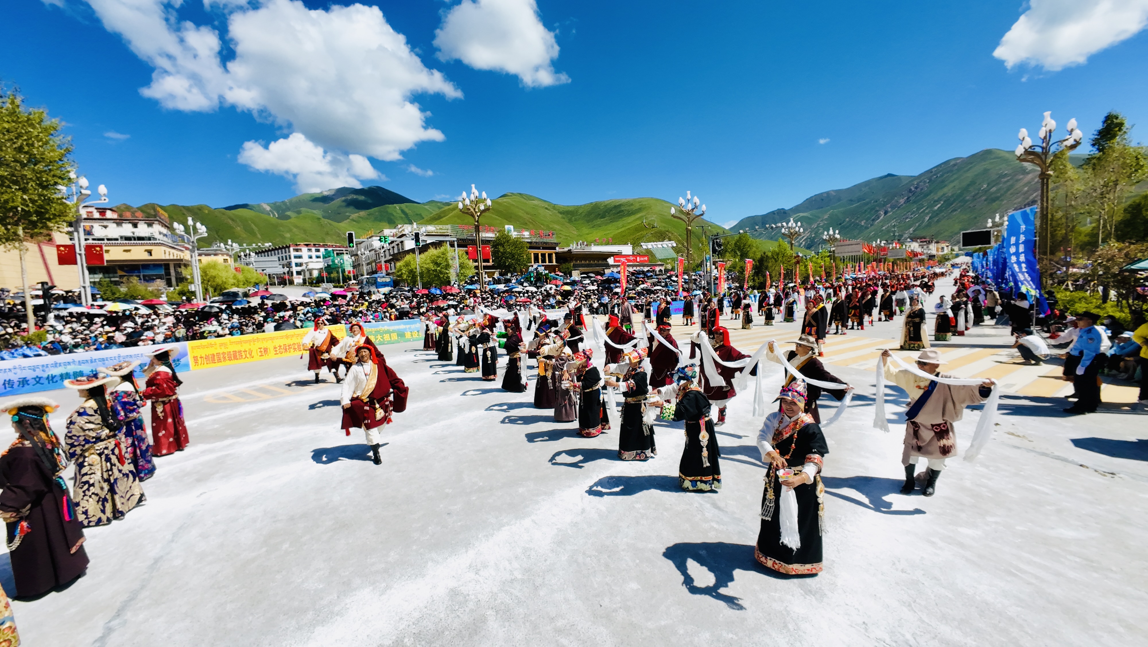 湛藍的天空映襯著高原的江河,潔白的雪山滋養(yǎng)無垠的牧場,又是一年高山流水縈繞著牧歌的時節(jié)。7月24日,一場行走的非遺展在青海省玉樹藏族自治州玉樹市街頭上演。“瀟灑的康巴人”——國家級藏族文化(玉樹)生態(tài)保護實驗區(qū)建設(shè)成果非遺巡演現(xiàn)場,瀟灑多彩的玉樹民族民俗文化在此呈現(xiàn)。