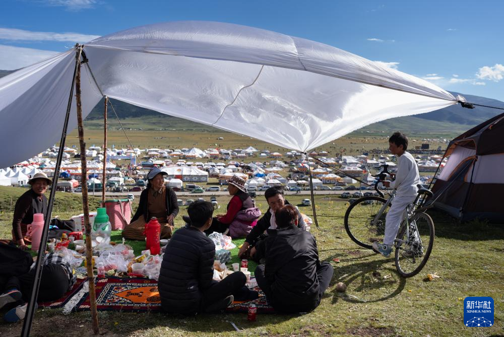 7月29日至8月1日,來自四川省甘孜藏族自治州理塘縣各鄉(xiāng)鎮(zhèn)的牧民齊聚毛埡大草原多旺塘參加理塘“八一”賽馬會(huì),他們?cè)诓菰洗钇饚づ?,跳起歡快的鍋莊,進(jìn)行賽馬、民俗運(yùn)動(dòng)會(huì)等持續(xù)多天的民俗活動(dòng)。