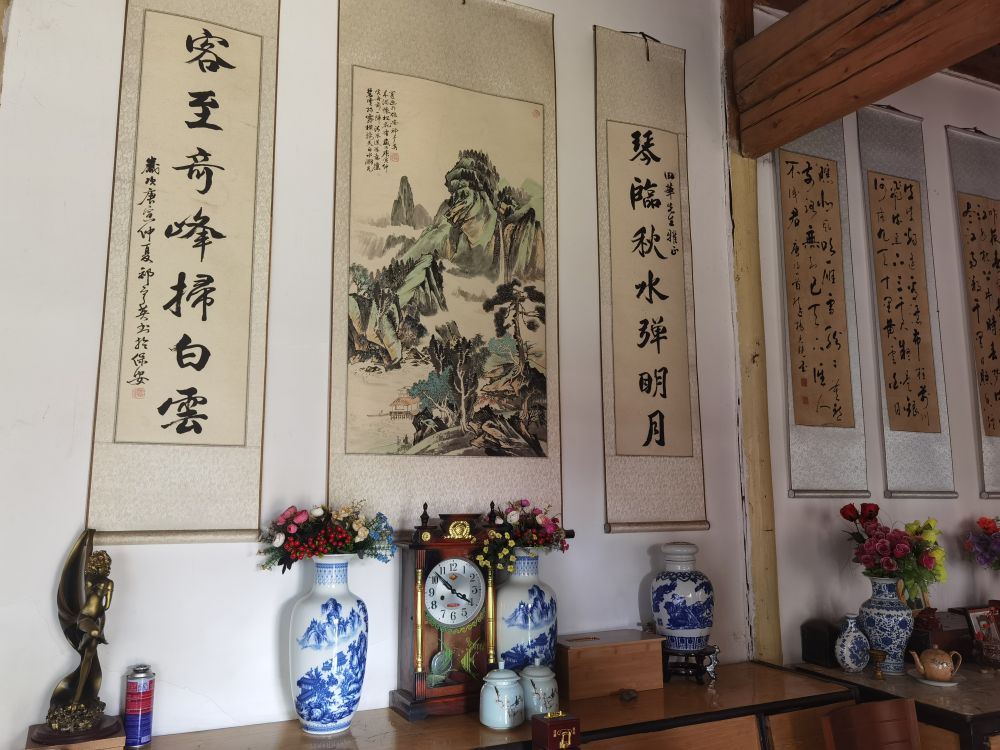 61歲土族退休教師田華的家,已有百年歷史。這所老宅完整保留了青海河湟地區(qū)農(nóng)村莊廓院的傳統(tǒng):四合院內(nèi)四面靠墻建房,庭院中花木繁茂;正房?jī)?nèi)墻上掛有古訓(xùn)字畫(huà),條幾上置古瓶、鏡架和銅制供器,古色古香,頗有耕讀傳家遺風(fēng)。