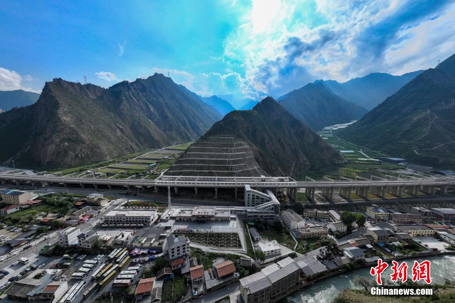 圖為川青鐵路鎮(zhèn)江關至黃勝關段鎮(zhèn)江關站。(無人機照片)中新社記者 劉忠俊 攝