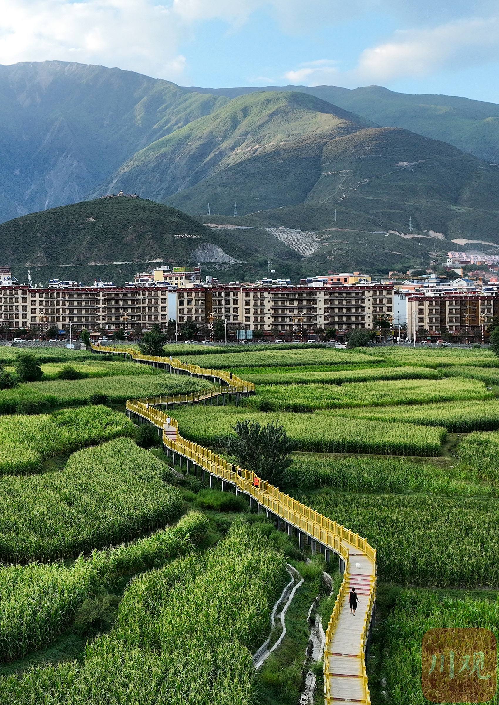 巴塘縣城與田園棧道美景同框