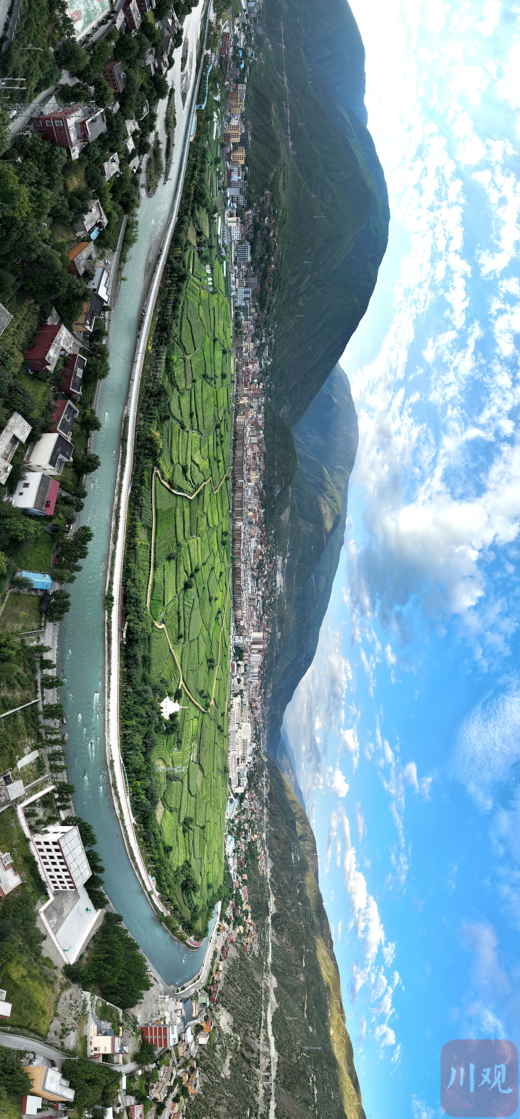 巴塘河流經(jīng)田園棧道全景