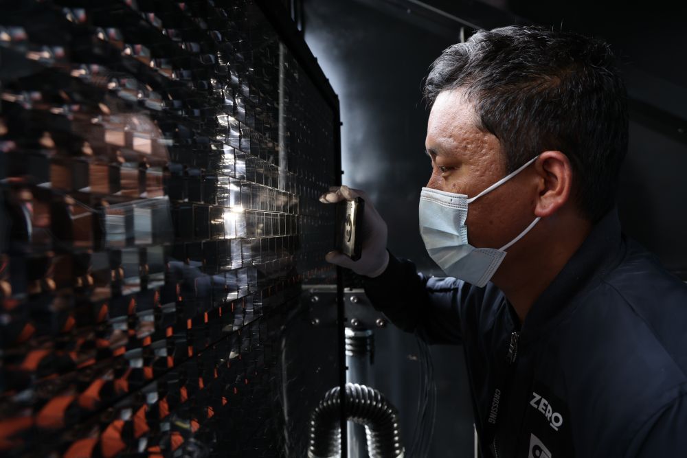 9月20日,“拉索”工作人員在一臺廣角切倫科夫望遠鏡上檢查成像部件。新華社記者 金立旺 攝
