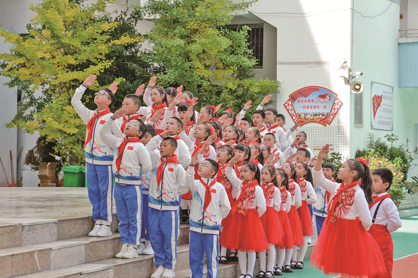 活躍提升組織生活也是少先隊(duì)工作強(qiáng)基固本的重要環(huán)節(jié)。通過健全少先隊(duì)階梯式成長激勵體系;全面實(shí)施分批入隊(duì)、分段教育、分級激勵和推優(yōu)入團(tuán);依托“紅領(lǐng)巾獎?wù)隆备采w隊(duì)中教育全過程等措施,全市14至15周歲新入團(tuán)團(tuán)員經(jīng)由少先隊(duì)組織推優(yōu)入團(tuán)達(dá)100%。此外,全覆蓋開展“開學(xué)第一堂隊(duì)課”、主題隊(duì)課活動,規(guī)范舉行入隊(duì)儀式等,讓少先隊(duì)員組織意識和光榮感全面增強(qiáng)。