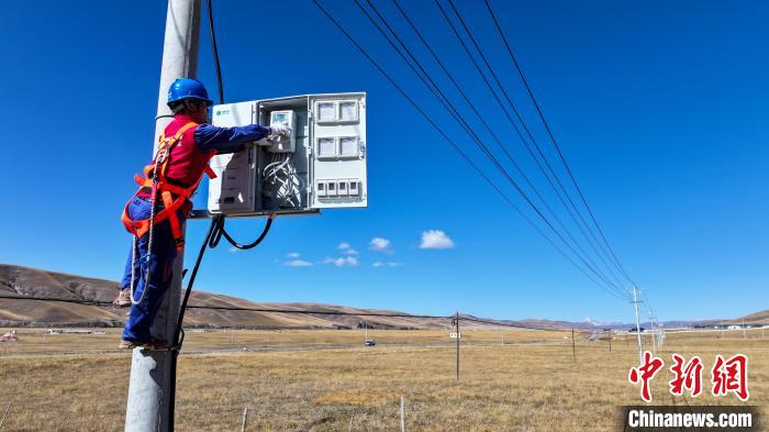 10月17日,在青海省海北藏族自治州剛察縣果洛藏貢麻村,久邁多杰檢查牧民戶表運(yùn)行情況。中新社記者 薛蒂 攝