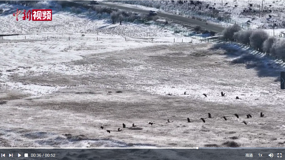 近日,在四川省阿壩州紅原縣月亮灣濕地成群的黑頸鶴遷徙“大軍”在空中翩翩起舞,它們時(shí)而排成一排,時(shí)而散開,上演了一場(chǎng)高空“飛行大片”。
