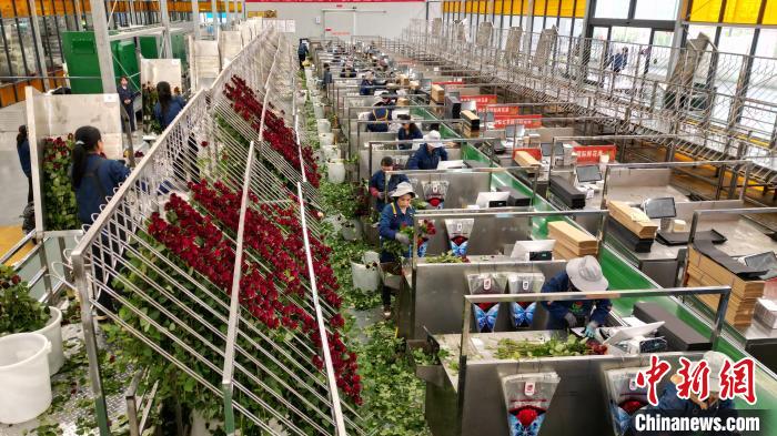 目前,當(dāng)?shù)亟ǔ擅娣e20萬平方米高新智能化溫室,鮮花四季盛開。記者看到,棚頂紅色的全自動(dòng)補(bǔ)光燈正在為玫瑰“延長光照時(shí)長”。精準(zhǔn)控制營養(yǎng)液成分和濃度的智能化水肥一體化系統(tǒng)、自動(dòng)化分選等高新設(shè)備投入,科技種植和品質(zhì)上升,讓臨夏成為中國重要的優(yōu)質(zhì)鮮切花生產(chǎn)基地,日產(chǎn)20萬枝鮮切花,海內(nèi)外訂單不斷。