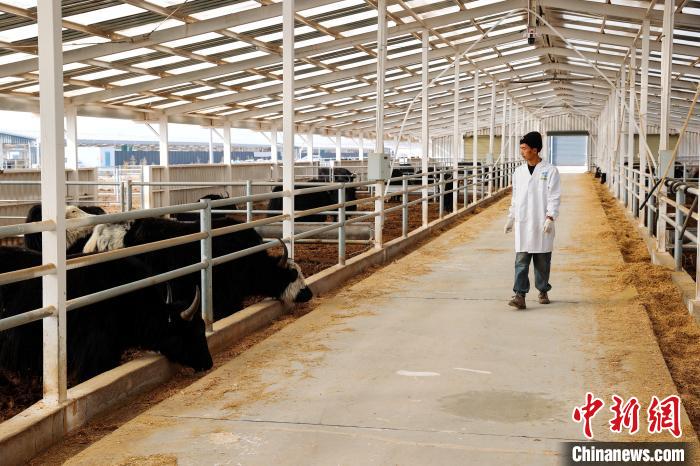 走進青海省海東市互助土族自治縣的海盛生態(tài)牧場,并排建設的牛棚內,千頭牦牛正在舔舐充滿酒糟味的飼草。