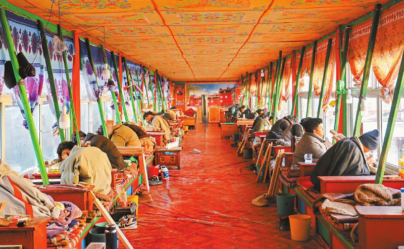 一起獲得“新生”的,還有古老的技藝。54歲的非物質文化遺產代表性傳承人扎多,從事雕版制作已有30余年。復刻工作的啟動,讓他有了正式工作。除了復刻雕版,他還在傳習所帶教,兩項工作加起來年收入超10萬元。