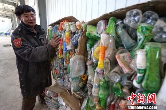 圖為改則縣從草原上收集而來的各類塑料瓶等白色垃圾。曹枝清 攝