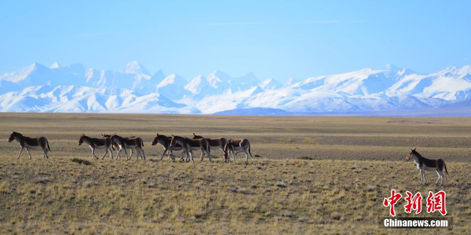 在阿里偶遇藏野驢的概率極高,草原上、小溪旁、濕地里、雪山下……幾乎無處不在。藏野驢不懼過往的車輛和行人,不時還凝視、打探端著相機的人類,仿佛在思考“驢生”。圖為雪山下的藏野驢。江飛波 攝