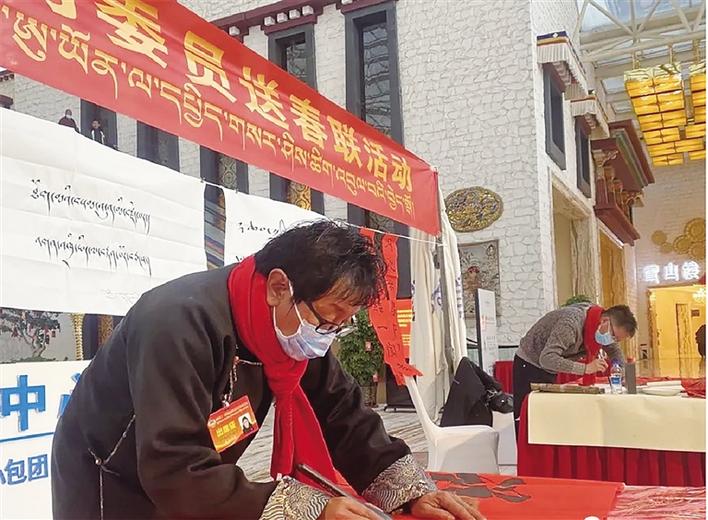 近日,自治區(qū)文聯(lián)、拉薩市文聯(lián)組織8名書法家前往拉薩圣地天堂洲際大飯店為政協(xié)委員送“福”、送春聯(lián)。