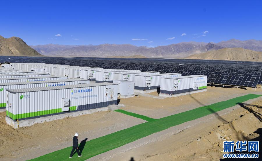 西藏日喀則市江當(dāng)現(xiàn)代生態(tài)產(chǎn)業(yè)示范園內(nèi)的50兆瓦光儲(chǔ)電站儲(chǔ)能系統(tǒng)和太陽能光伏組件(2020年12月24日攝)。新華社記者 張汝鋒 攝