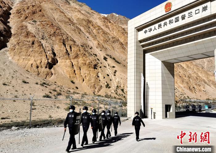 圖為普蘭邊檢站民警巡邏?!∑仗m邊檢站供圖