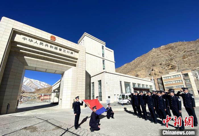 圖為普蘭邊檢站舉行升旗儀式。 普蘭邊檢站供圖