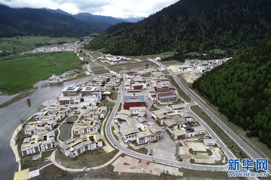 這是川藏公路旁的魯朗國(guó)際旅游小鎮(zhèn)(2019年5月28日攝,無人機(jī)照片)。 新華社記者 李鑫 攝