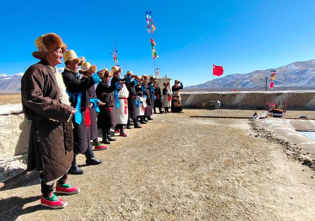 2月12日,拉薩市當(dāng)雄縣牧民跳起鍋莊舞。新華社記者 覺(jué)果 攝