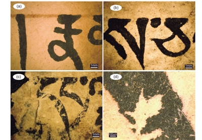 測定藏紙的年代,主要有兩種方法,一種是通過藏文的字體及內(nèi)容判定大致年代,還有一種是碳14測年技術(shù)。論文第一作者、中國科學院大學特別研究助理韓賓博士介紹,他們在請藏文專家進行文字預(yù)判的基礎(chǔ)上,在兩個不同的實驗室對藏紙樣品開展了碳14測年。結(jié)果表明該組殘片為12—13世紀古紙殘片。測年數(shù)據(jù)的一致性,也表明碳14測年技術(shù)可以很好地判定藏紙的年代,為后續(xù)藏紙的研究提供了參考。