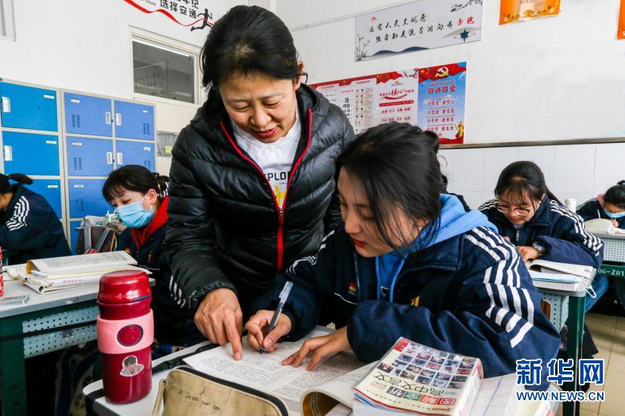 2月19日,班主任武敏指導(dǎo)次仁曲尼學(xué)習(xí)。新華網(wǎng) 發(fā)(王浩慶 攝)