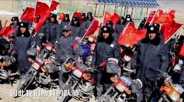 夜幕降臨高原,一天的訓練結(jié)束。隊員們騎著車從鄉(xiāng)里散去,出發(fā)前不忘再緊一緊車尾的國旗。一輪明月懸在喜馬拉雅山脈的群山上,照亮了守邊人的回家路。