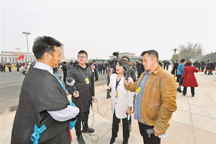 圖為全國(guó)人大代表米瑪國(guó)吉接受媒體采訪。記者 旦增西旦 攝