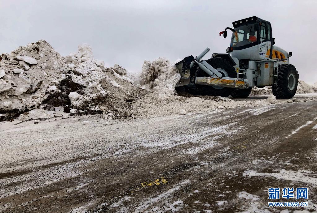 在國(guó)道109線K3351路段,安多公路養(yǎng)護(hù)段工作人員進(jìn)行除雪除冰作業(yè)(2020年3月11日攝)。新華社發(fā)(后耀軍 攝)