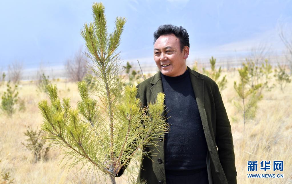 3月30日拍攝的索朗羅布種的樹(shù)。新華社記者 覺(jué)果 攝