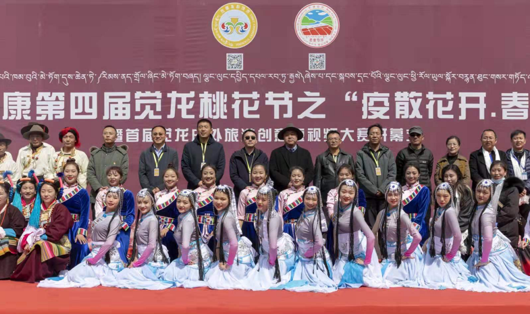 4月3日活動正式開幕,開幕式上,昌都市人大常委會主任、黨組書記,芒康縣委書記齊應海宣布活動開幕,并為納西民族鄉(xiāng)覺龍村頒授了《全國鄉(xiāng)村旅游重點村》獎牌。昌都市旅游發(fā)展局副局長蔡慶,芒康縣委常委、常務副縣長杜晨光出席開幕式并致辭。麗江藝術(shù)團和芒康藝術(shù)團帶來的歌舞《吉祥謠》《福滿昌都》《崗拉梅朵》等精彩紛呈的表演為在場觀眾帶來了一場歌舞盛宴。開幕式后,游客們循著山谷中遍野的桃花,漫步山野田間,記錄著每一個美麗的瞬間。出了覺龍溝,大家在扎古西大峽谷參觀了文成公主廟和崗達寺,傍晚在云曲莊園大家圍著篝火跳起了歡快的舞蹈。